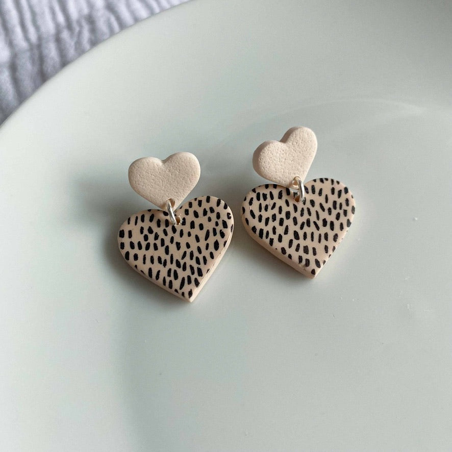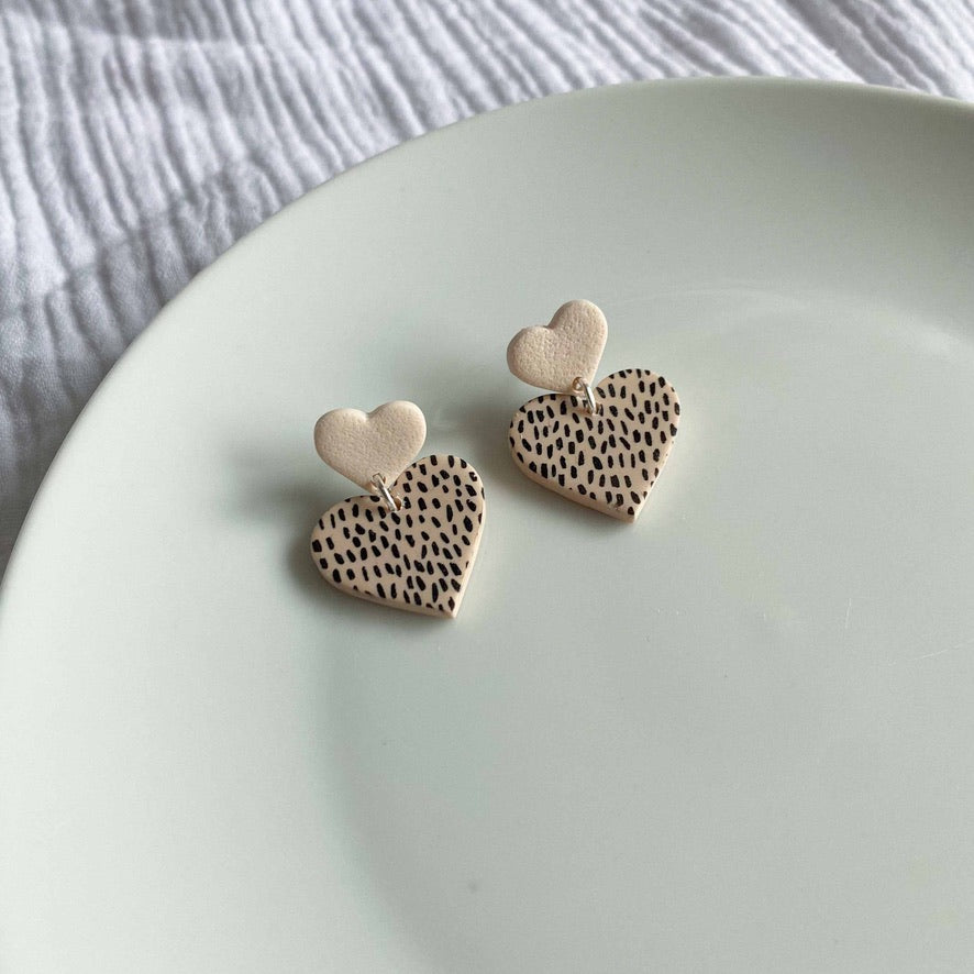 - Dalmatian print heart stud earrings